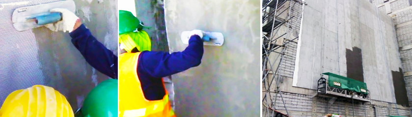 Application of Grandfix Basecoat 1k and laying of 75 gsm Fiberglass Mesh